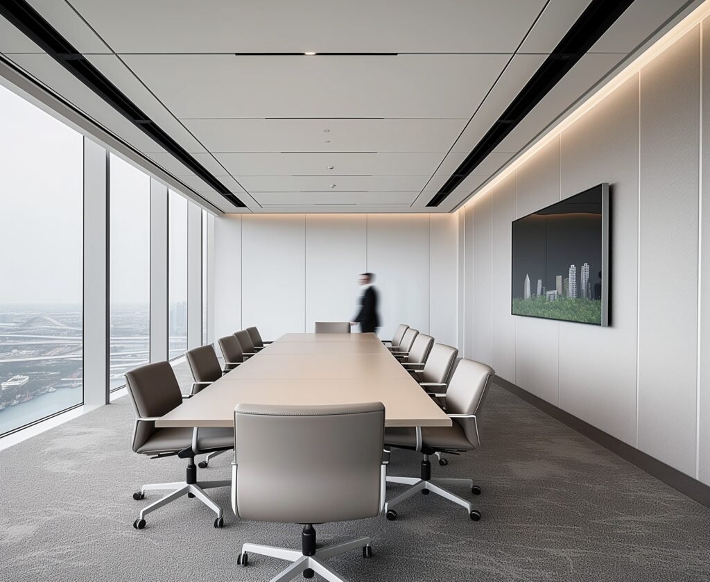 For small meeting rooms, ready-made 6-8 person conference tables work well. For larger spaces, we can customize long conference tables with cable management functions, paired with ready-made ergonomic office chairs to balance practicality and comfort.