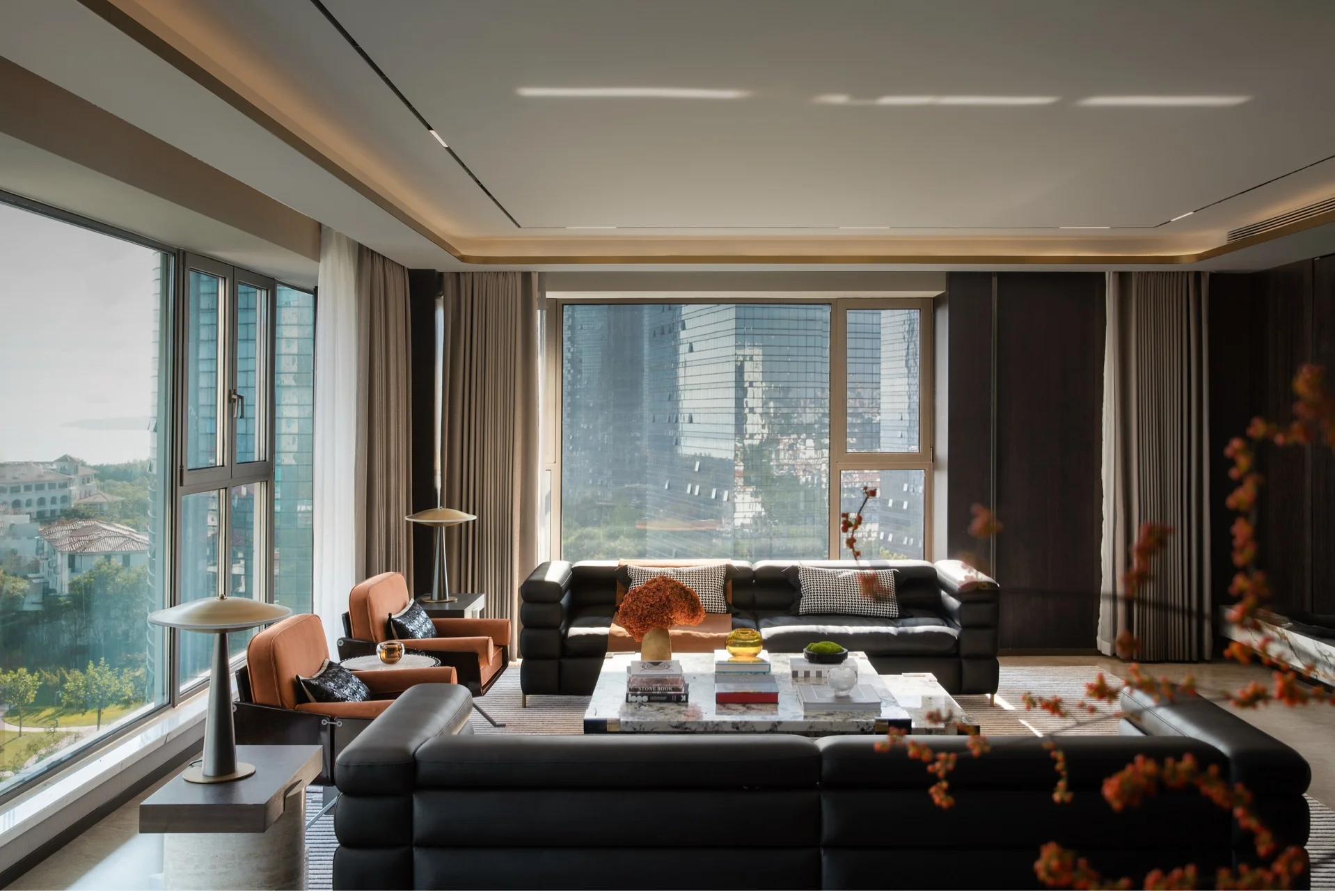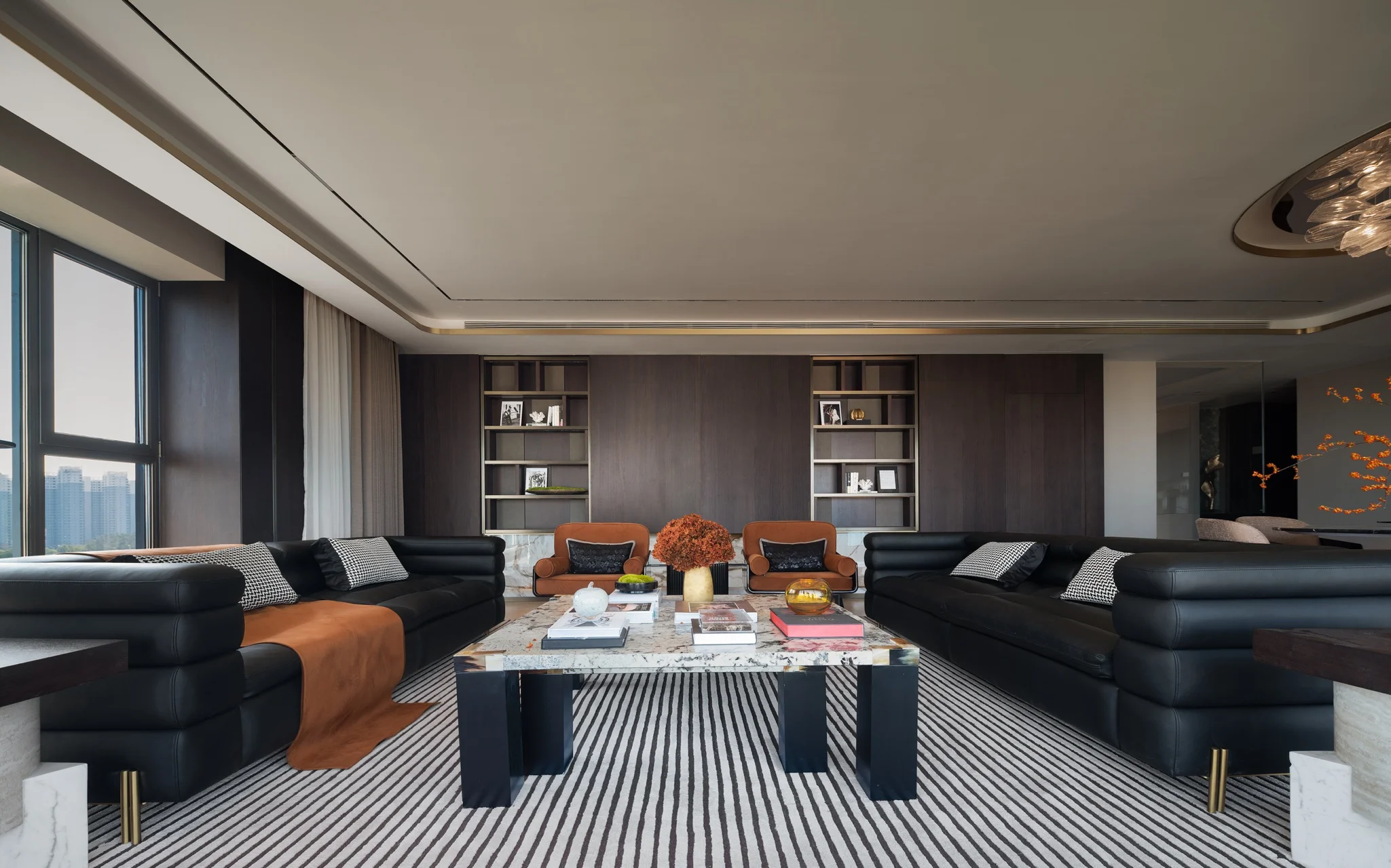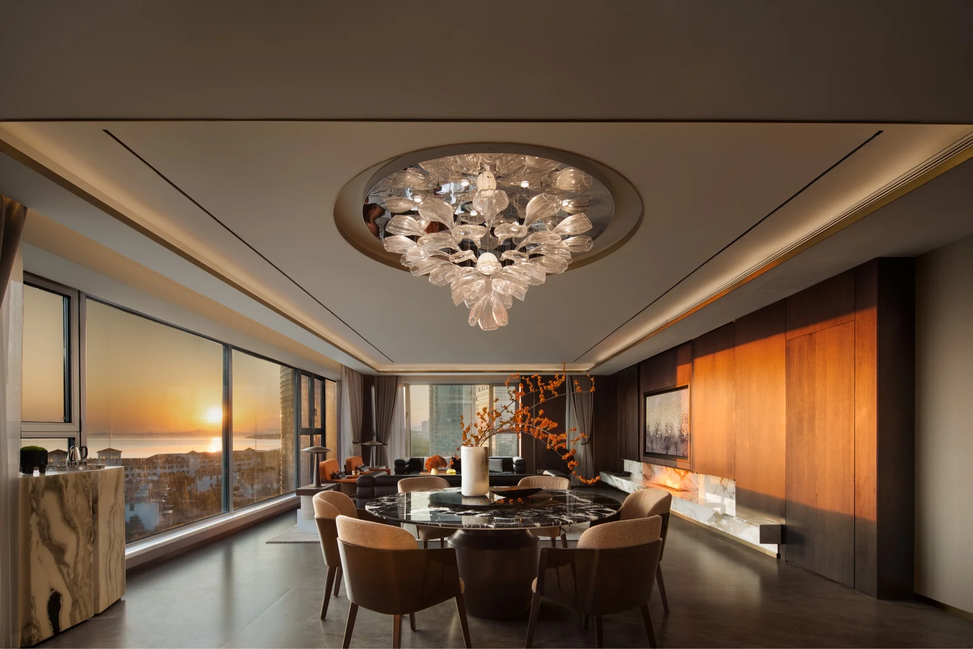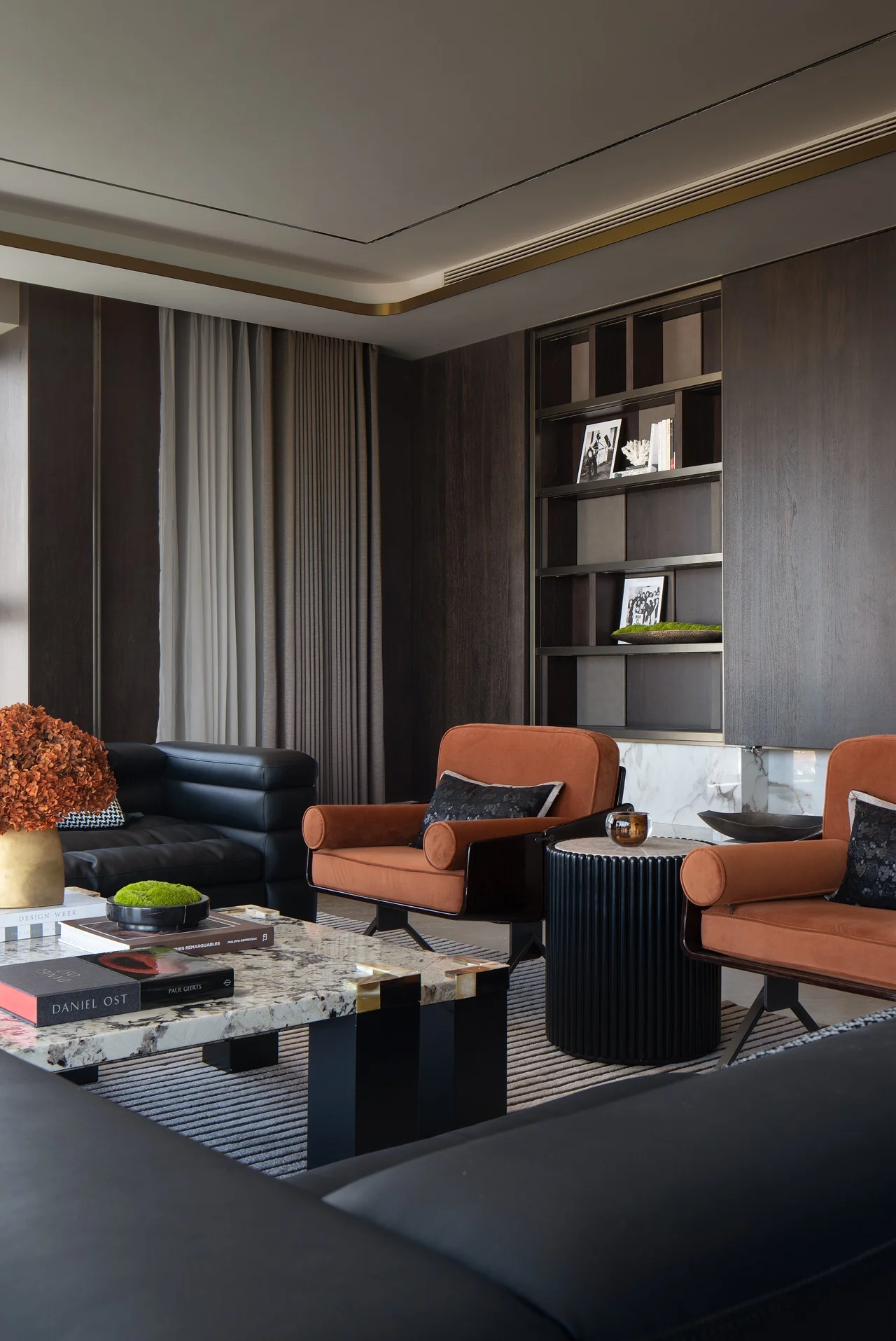 Apartment Villa Design Kitchen Cabinet Design Interior Design of High-Volume Villas Log Veneer Skeleton Line Living Room