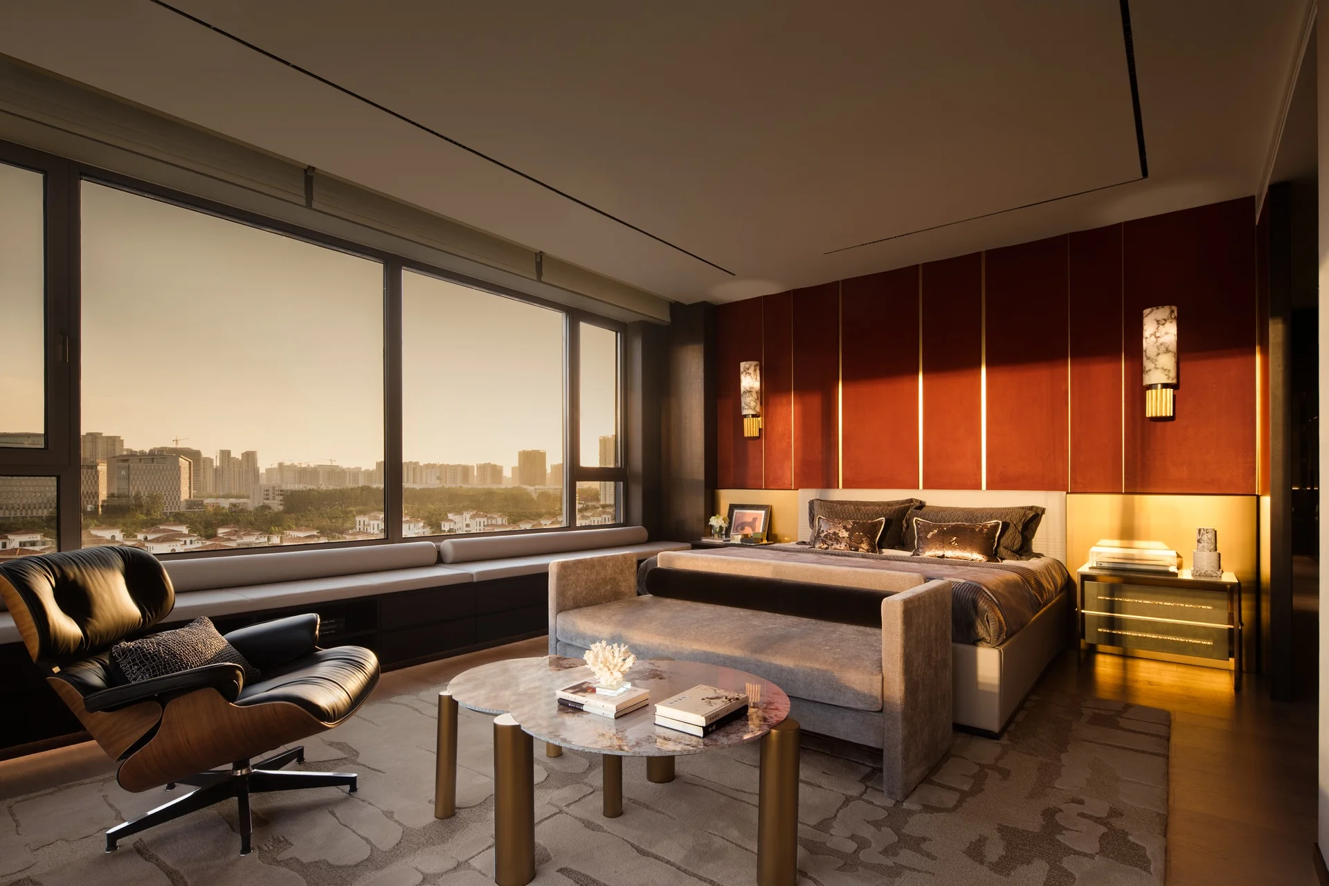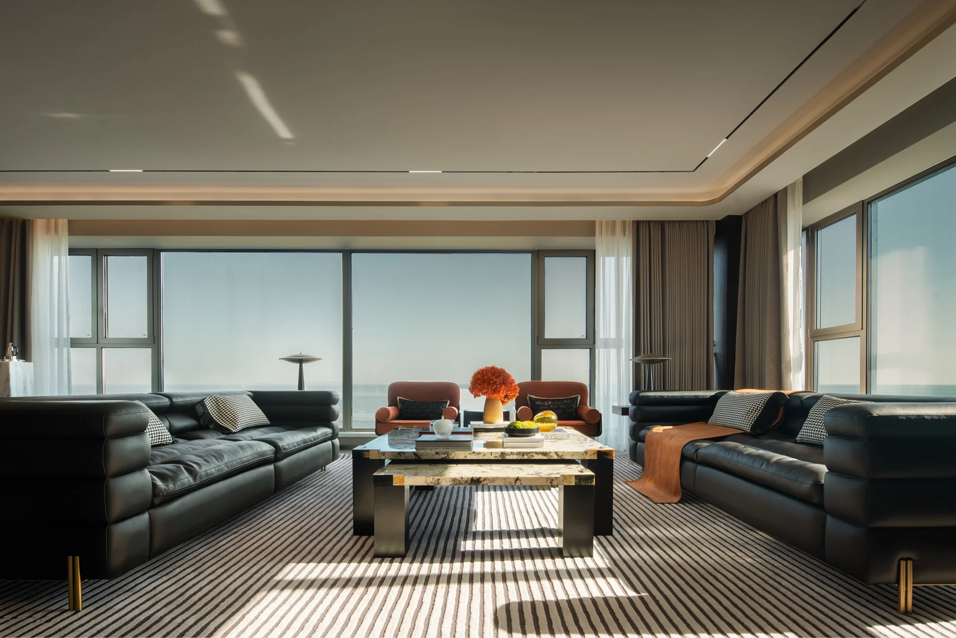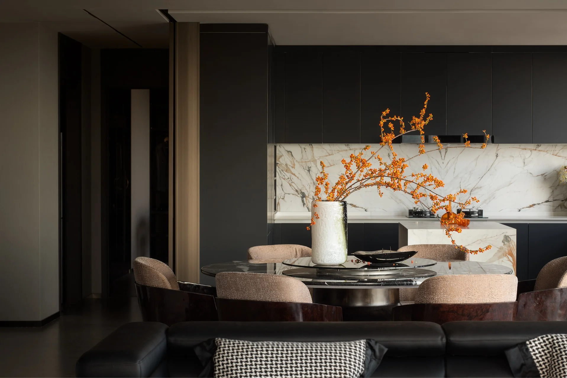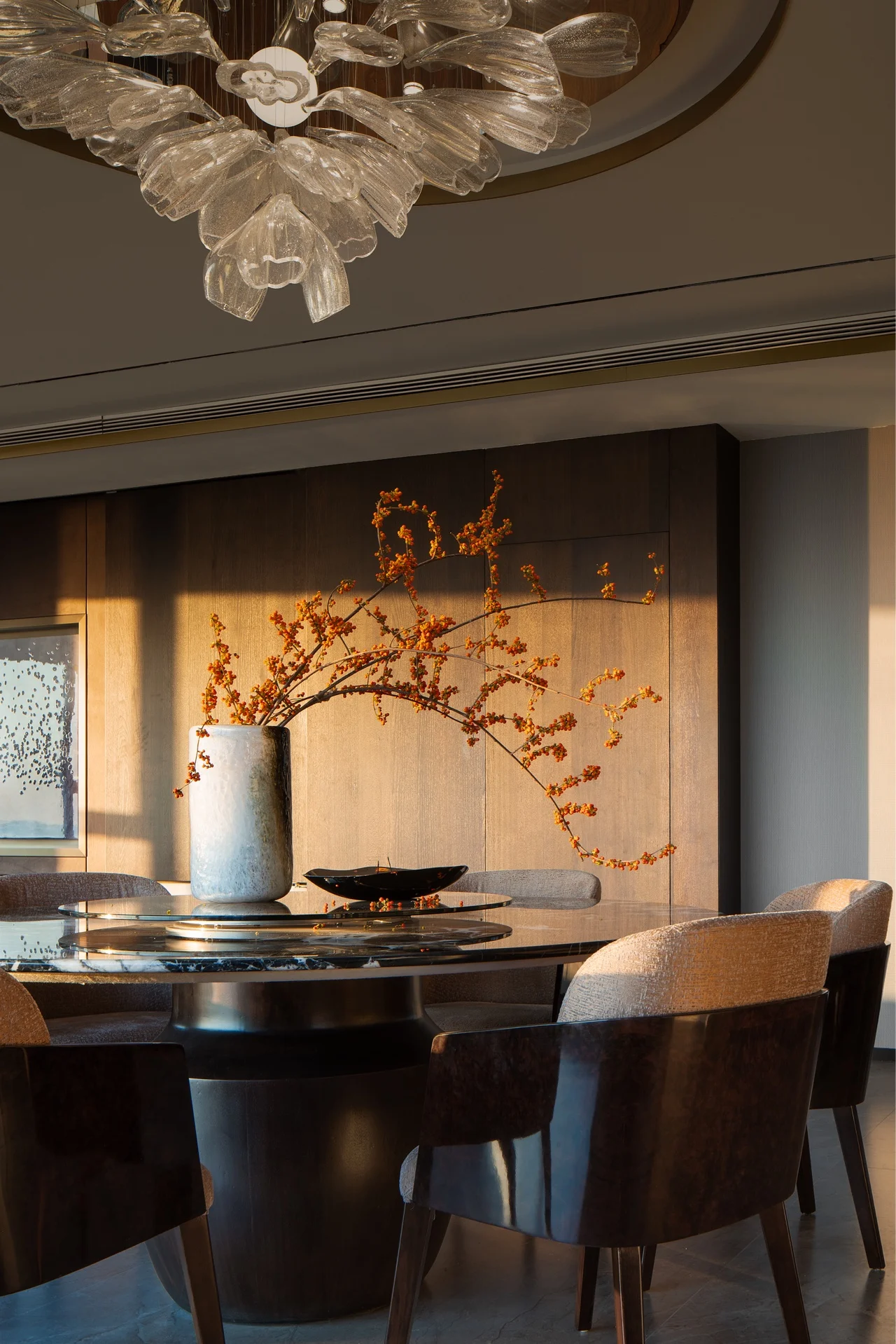 Apartment Villa Design Kitchen Cabinet Design Interior Design of High-Volume Villas Log Veneer Skeleton Line Living Room