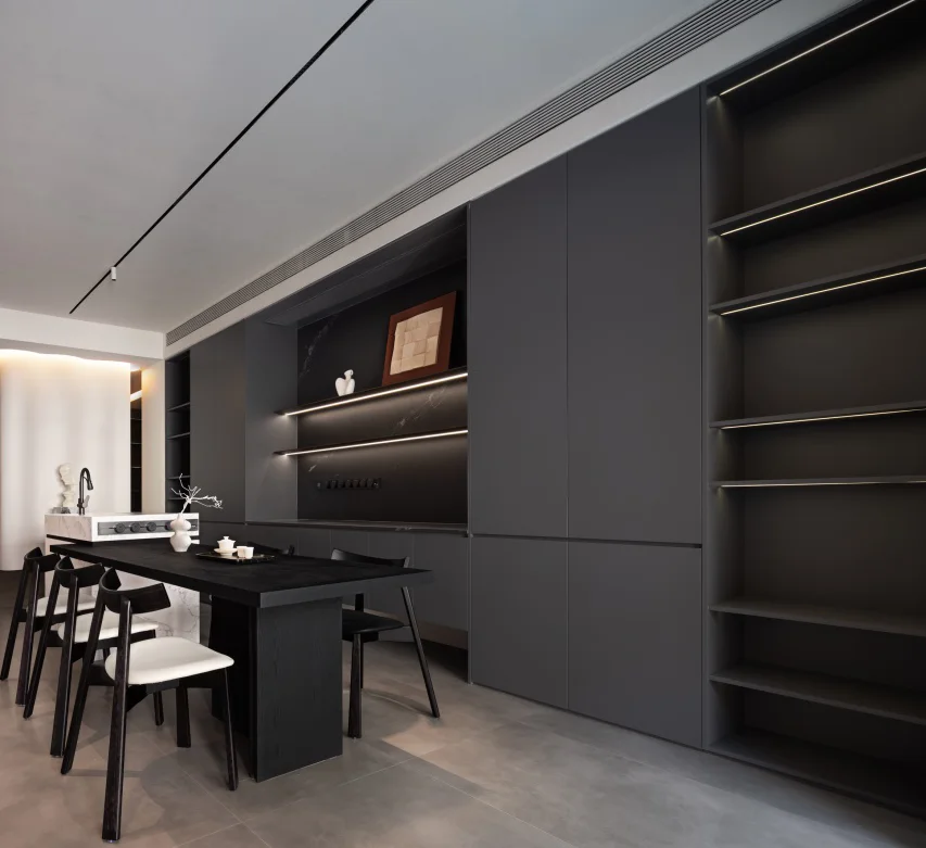 Custom Grey Melamine Board Kitchen Cabinet 3D Design Kitchen Furniture for Apartment & Villa Kitchen Layouts