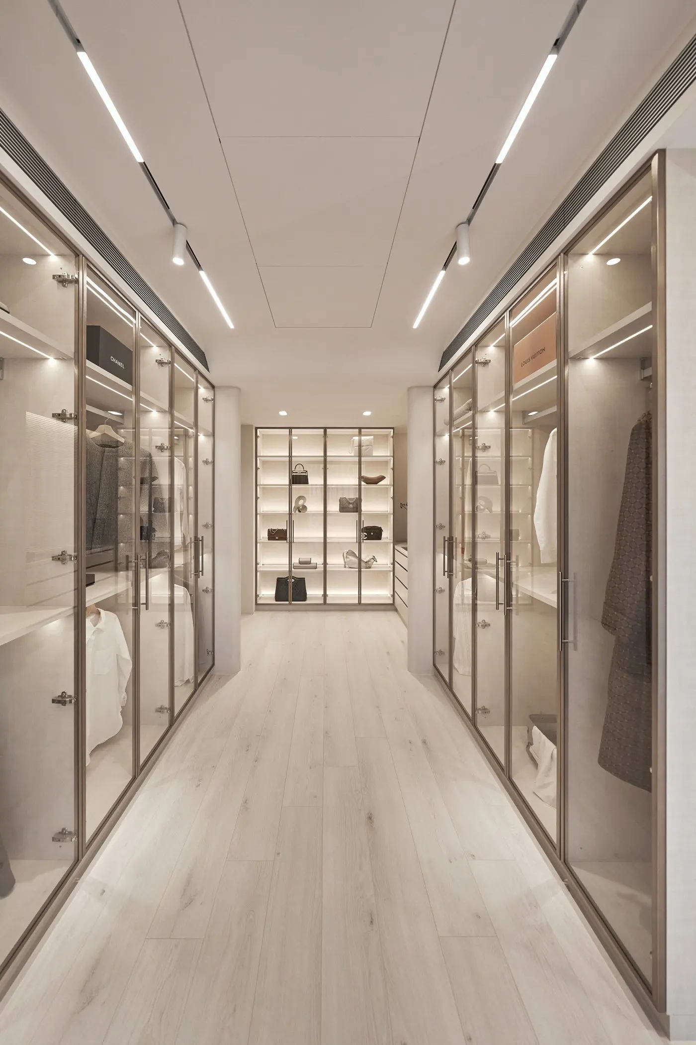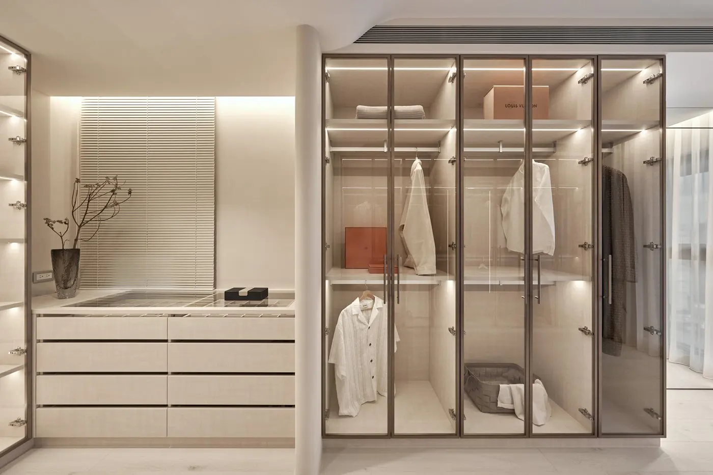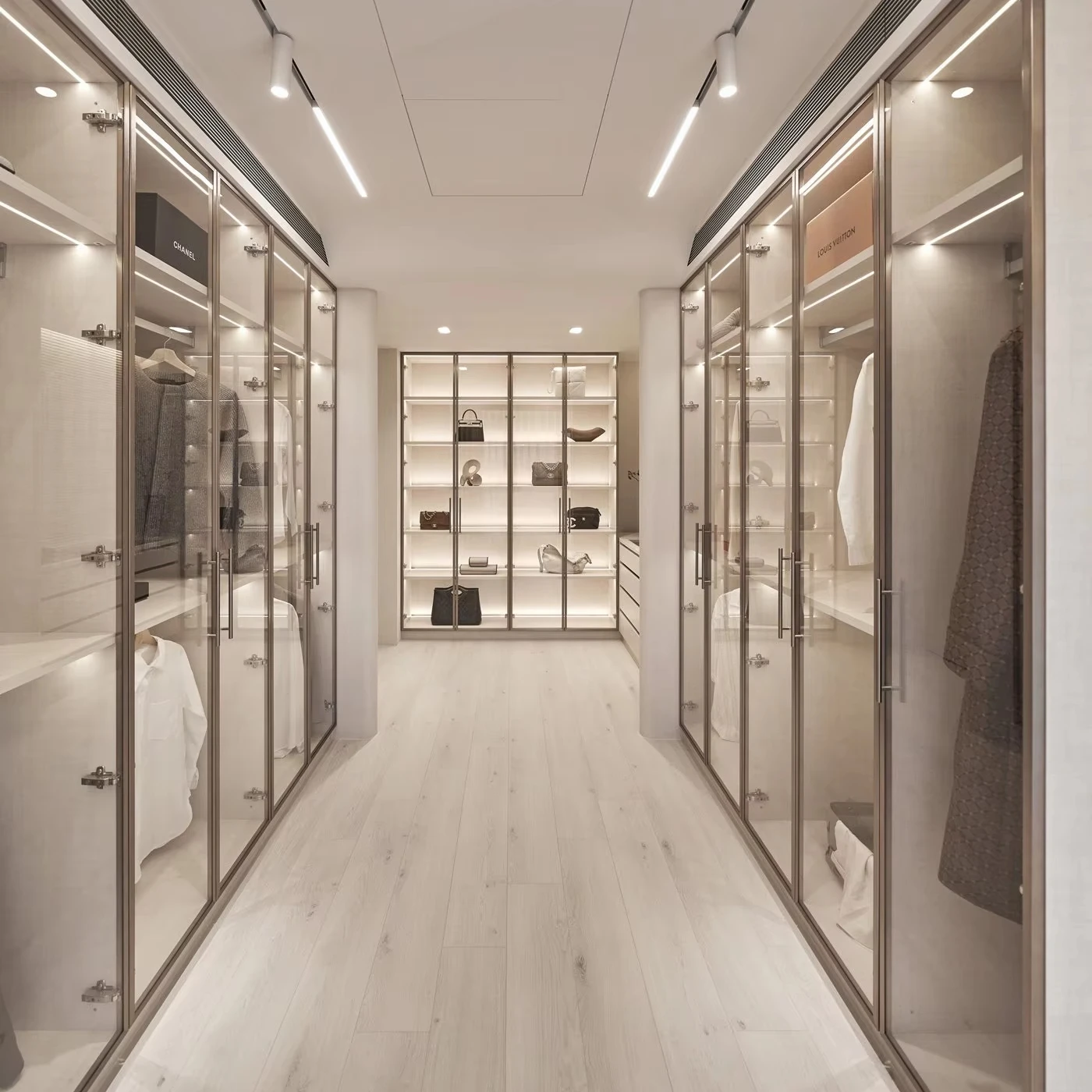 Custom Luxury Modern Design LED Light Wardrobe with Aluminum Glass Door High-End Bedroom Closet Furniture for Home Use
