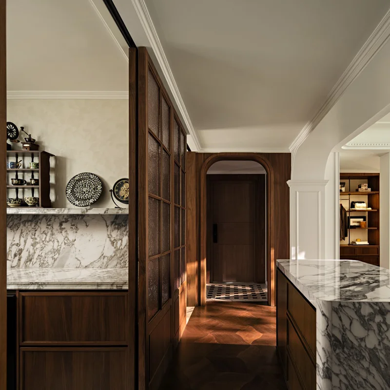 Modern Kitchen Storage Cabinet Wood Kitchen Cabinet Set Luxury Modular Marble Kitchen Cabinet Solid Wood High Quality Apartment