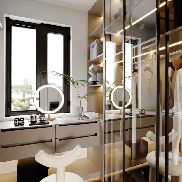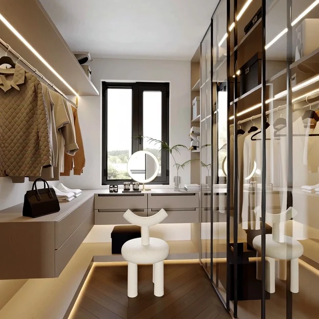 Modern Minimalist Luxury Walk-In Closet with Glass Portable Bedroom Furniture Wardrobe Combination for Home Use