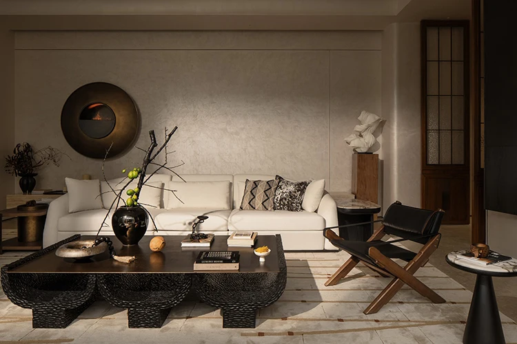 Modern One Stop Furniture Set for Living Room Sectional Velent Sofa Bed Chair Coffee Table Cloth Sponge Hotels Villas Apartments