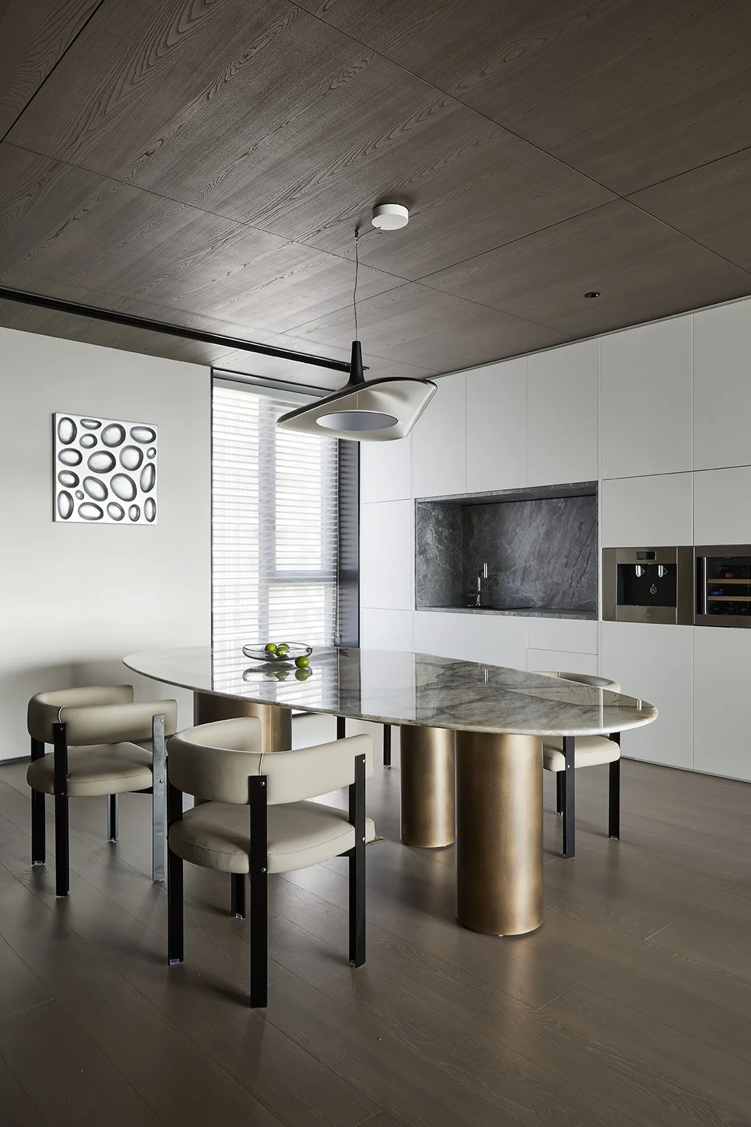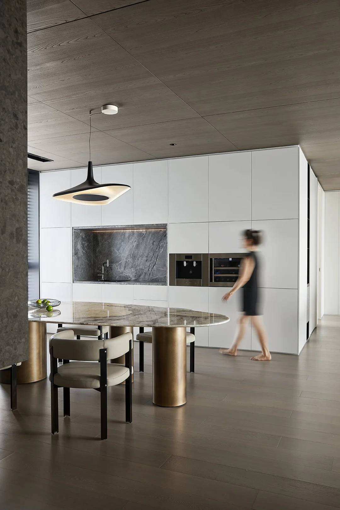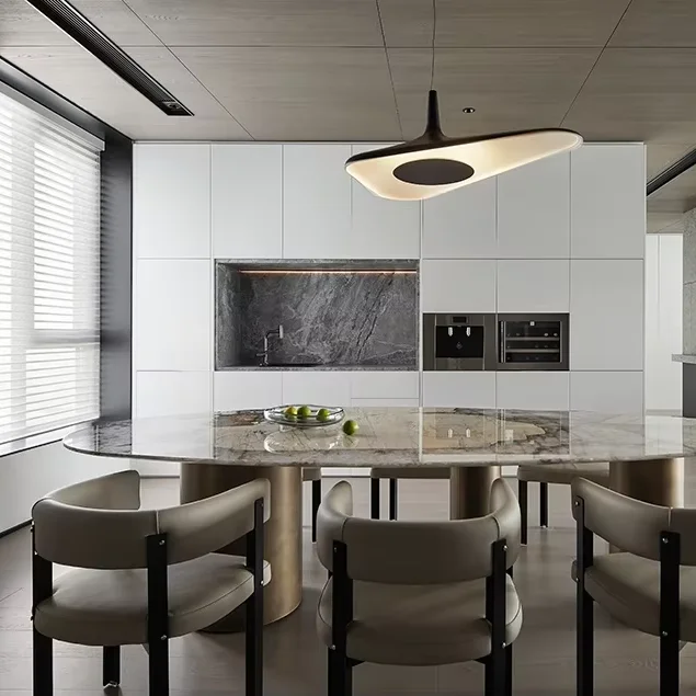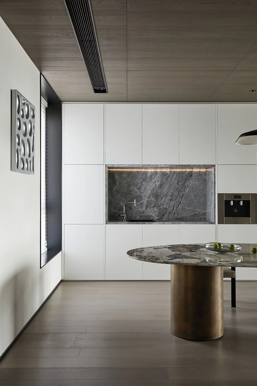Villa Modern Minimalist Cabinetry White Cabinet with Built-in Oven and Mable Countertop High-end Customization Apartment Kitchen