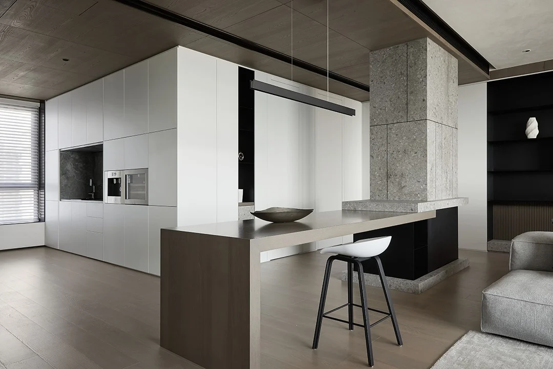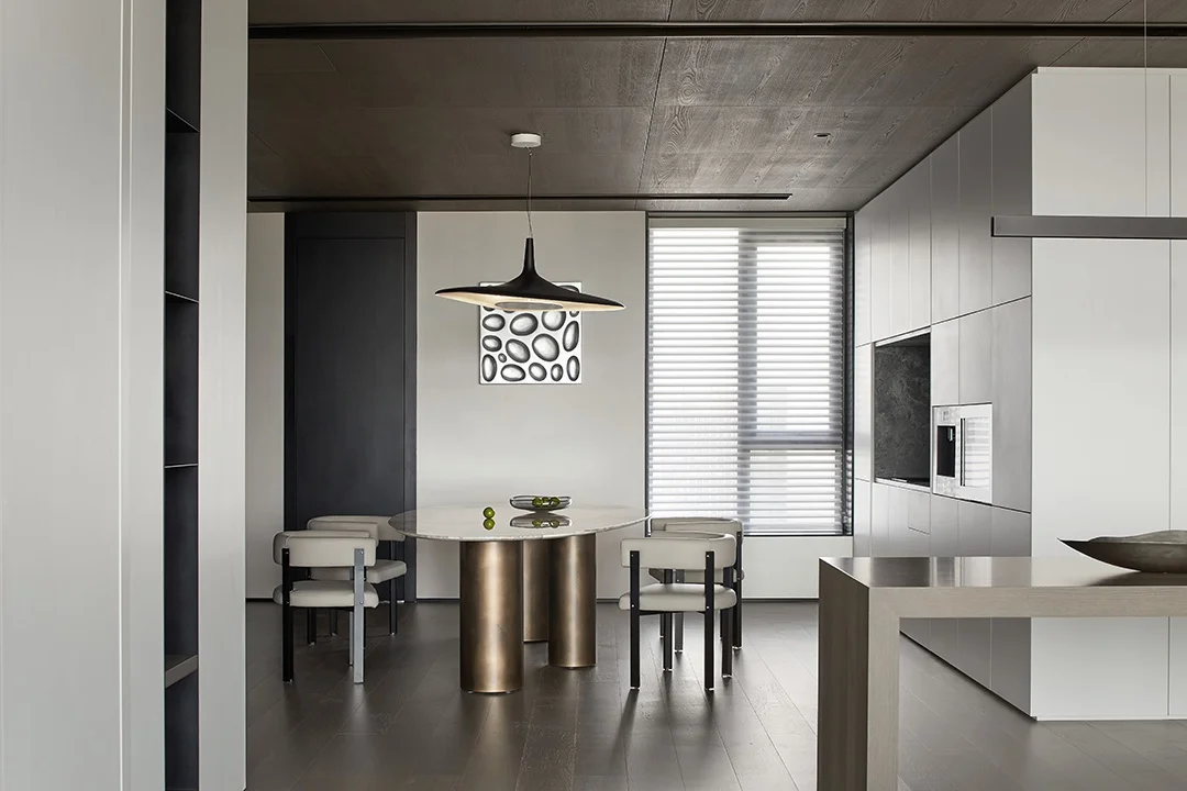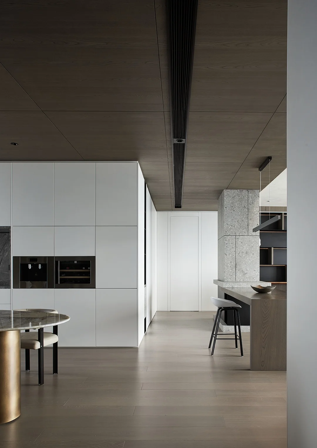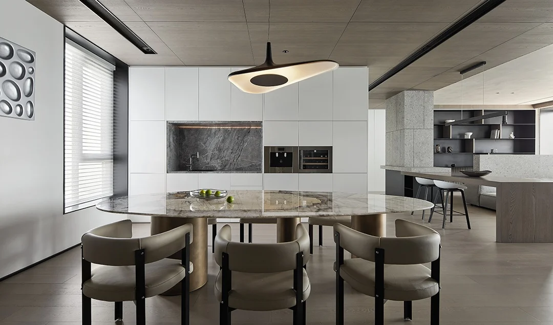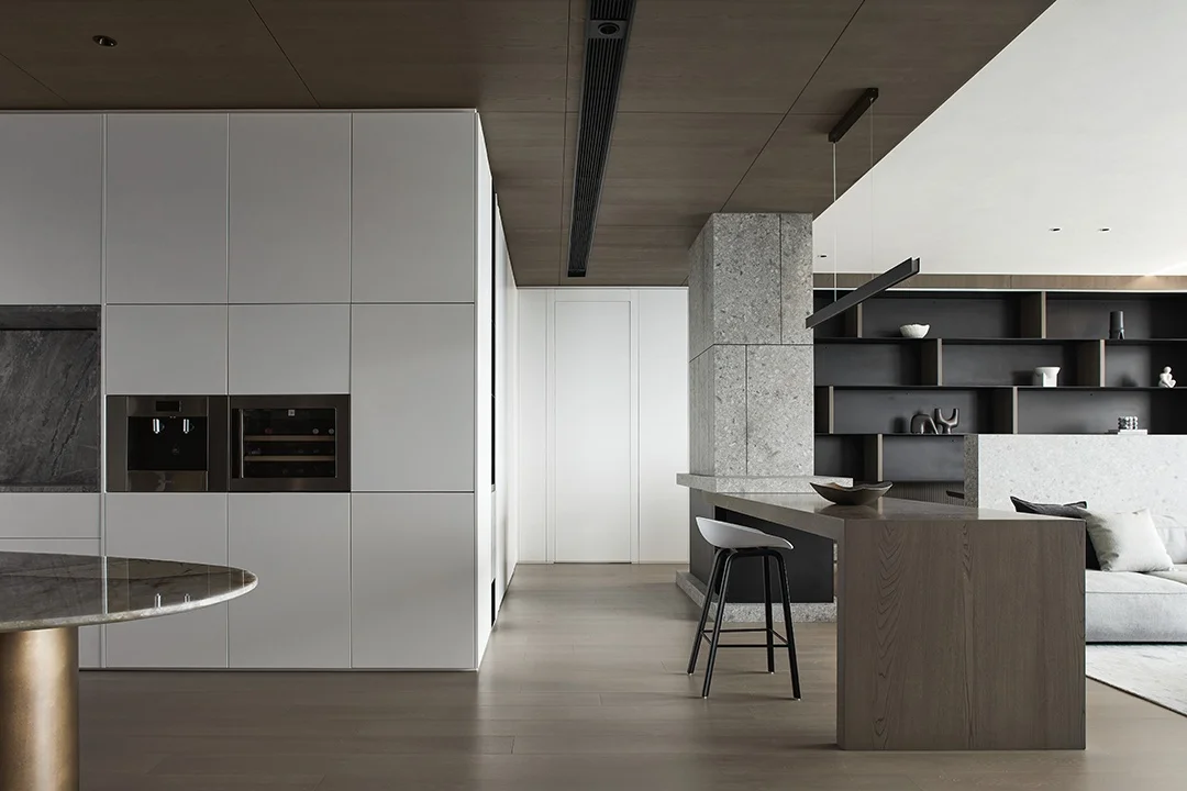 Villa Modern Minimalist Cabinetry White Cabinet with Built-in Oven and Mable Countertop High-end Customization Apartment Kitchen